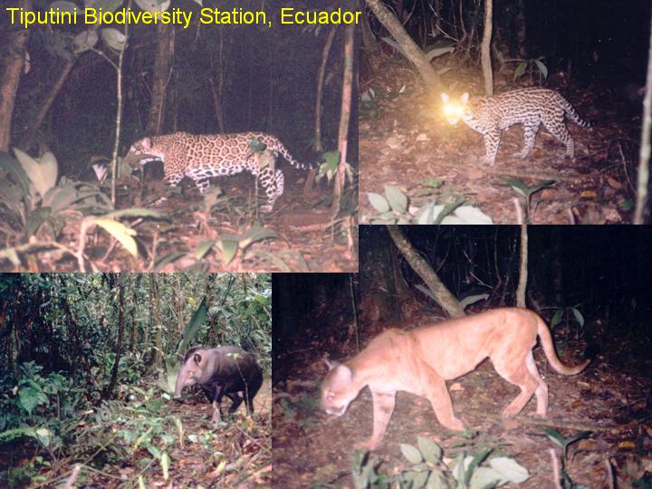 My research focuses on the structure and organization of bird communities, primarily in tropical forests. I am particularly interested in the impact of resource abundance (e.g., fruit) on temporal and spatial variation in bird populations, spatial patterns of diversity, and effects of habitat alterations on bird populations. The current focus of tropical work is in Ecuador, at the Tiputini Biodiversity Station (~0o 38' S, 76o 08' W), where we have several ongoing projects. One project focuses on spatial and temporal patterns of bird diversity (as well as aspects of community composition, population dynamics, and movement) within and between two 100-ha study plots. The Station was established in 1994 by the Universidad San Francisco de Quito on a tract of undisturbed forest within the ha Yasuní Biosphere Reserve. We established the two 100-ha plots in terra firme forest in February 2001. (A protocol has been established for use of these plots for other researchers.) We use a combination of mist nets and direct observations to record the occurrence and locations of birds within the two plots. A second major project focuses on reproductive success in manakins (Pipridae). A third project, carried out in collaboration with many people at the station, is a camera-trapping program focused on large terrestrial mammals (see article in El Comercio). We have camera traps established along trails, on the plots, and at saltlicks (saladeros). Students in my lab have come from a variety of countries (e.g. Argentina, Bolivia, Brazil, Chile, Colombia, Guatemale, Luxembourg, Peru, Uruguay, United States, Venezuela).