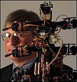 Stephen Thaler, of Imagination Engines, Inc., in Maryland Heights, with his cockroach robot named 'H3'. (Robert Cohen/P-D) |