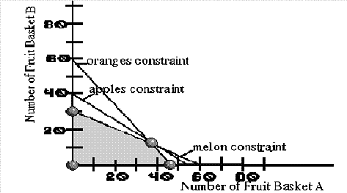 The first step is to represent the problem mathematically. In this case, we will have two variables, x and y, where x represents the number of Fruit Basket A to make and y represents the number of Fruit Basket B to make. We know that each Fruit Basket A sells for $8 and each Fruit Basket B sells for $12, but in order to know how much profit we will make, we must compute the costs of each basket. Basket A contains 3 apples @ $ .30, 4 oranges @ $ .20 and I melon @ $1.20, so it costs $2.90 to make up the basket (if we assume the actual basket is free). Hence, the net profit from Basket A is $5.10. Using a similar method, we can find that the net profit from Basket B is $7.80. Hence, our objective is to: