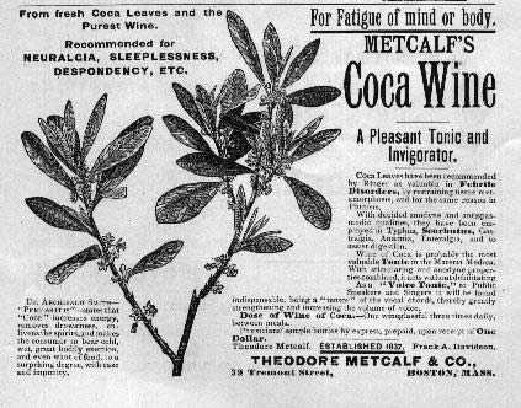 Metcalf's Coca Wine was one of a huge variety of wines with cocaine on the market. Everybody used to say that it would make you happy and it would also work as a medicinal treatment.