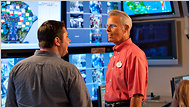 Phil Holmes, right, vice president of the Magic Kingdom, in the theme park’s underground control room.
