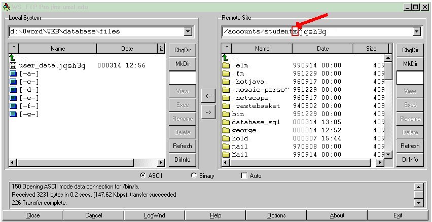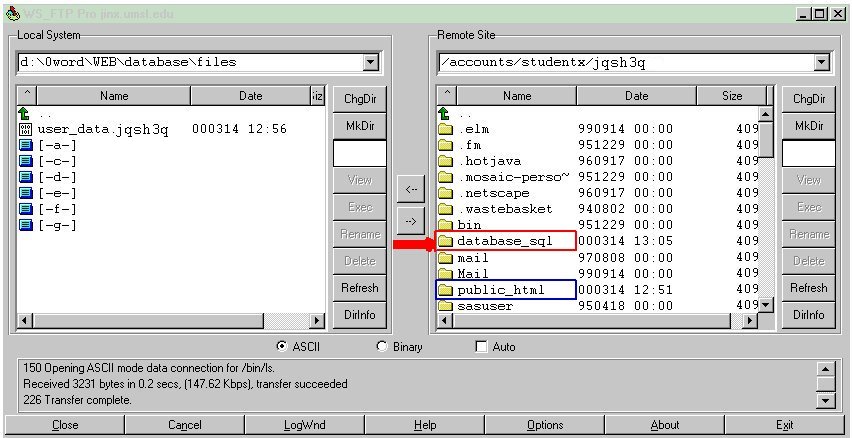 Log on to your Admiral account. Create a subdirectory called "database_sql" at the root of that account. This should NOT be in the public_html directory, but rather at the root directory as shown in red the figure below.