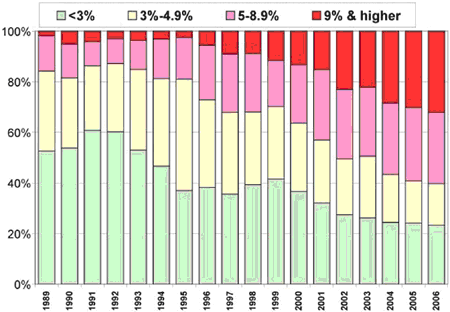 just under 4 percent reported in 1983 and represents more than a doubling in