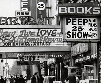 "A heterotopia can also change its meaning through history (in much the same way that a signifier acquires a new signified), like for instance the porn-theatres in Times Square in New York. Following the new regulations governing the district, the traditional stomping grounds for the sex industry in New York have been transformed into Disney entertainment centres for the ”whole family”. From being a space that reflected the surrounding society through the investments of sexuality or ”perversity” as such – the area is being turned into a heterotopia of compensation, constituted by an over-perfect representation of American middle class and working class ideals (Åsdam, 1995).