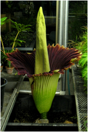 The Biology department greenhouse Titan Arum Flower is blooming. Watch the Progress!