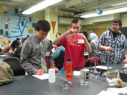 This spring, the Biology department hosted ~50 high school students for an afternoon! The students had fun in a lab, extracting DNA from strawberries, creating chemical polymers, and analyzing of starch-degrading enzyme activity (alpha-amylase) in cheek cells before and after eating. Wendy Olivas organized the event, with several graduate students assisting: Milad Alasady, Anthony Fischer, Javier Hernandez, Melanie Miller, Jamie Palmer, Joseph Russo, Jonathan Sweeney, and Justin Ungerer. This program is through the Junior Science, Engineering and Humanities Symposium. Check out http://www.umsl.edu/~sep/programs/jsehs.html for more information.