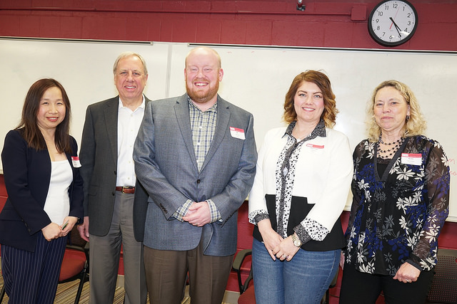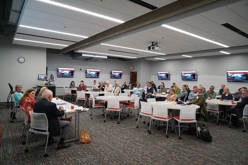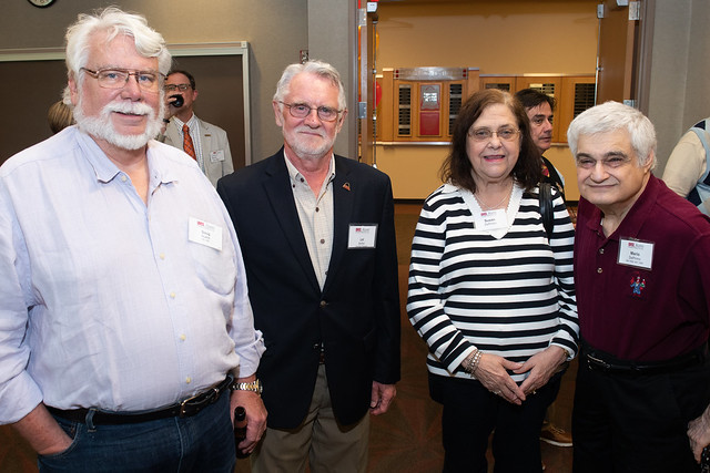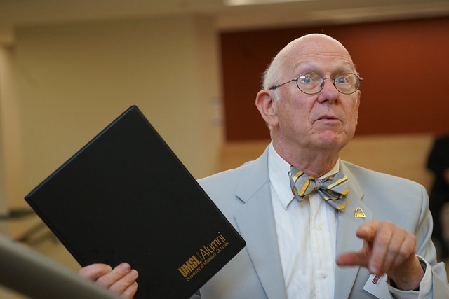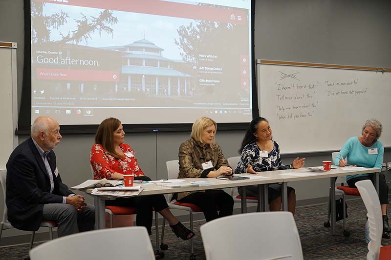 A Chemistry Alumni Council Event: Helping the Public Understand and Accept Science-Based Facts - On Oct 19. About 60 alumni, students, faculty and guests held a lively discussion. A panel consisting of Hal Harris: UMSL Emeritus Professor of Chemistry & Biochemistry, Aimee Hood: Regulatory and Scientific Engagement Lead at Bayer Crop Science, Kristine Callis-Duehl: Director of Education Research and Outreach at the Donald Danforth Plant Science Center, and Ruth Watt: Manager of STEM Events at the Saint Louis Science Center led the discussion which was moderated by Jeanette Hencken, BA 1985 , retired teacher at Webster Groves High School. The event was the brainchild of Michael J. Finkes, BS 1973, MS 1978, shown standing with the panel and the audience participation was very good. The experience was deemed to be a very successful event.