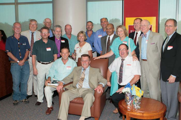 Five alumni from 1969 attended at least part of the weekends festivities and pictures are available. Here is one of Les Tucker, Doug Nuelle and Mario Deprimo, another of another Nuelle, Dr. Barton and Deprimo and his wife Susan and another of Doug Nuelle, Joe Bono and Mike Finkes, all at the Golden Reception on May 18. Had he not been drafted, Finkes would have graduated in 1969 with his classmates.Here is a picture of three of the 1969 graduates, Tim Miller, Doug Nuelle and Joe Bono, with Harold Messler BS 1970 and Dr Barton at the reception of the Solarium.