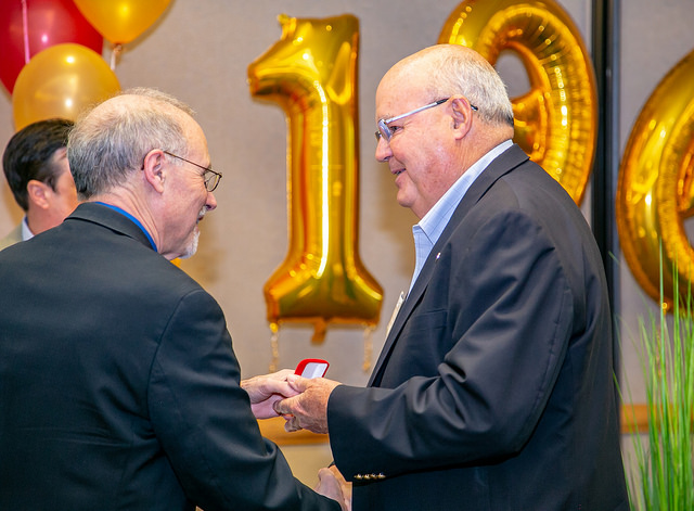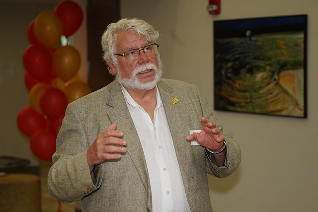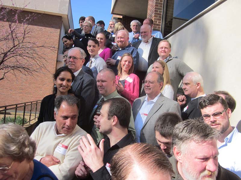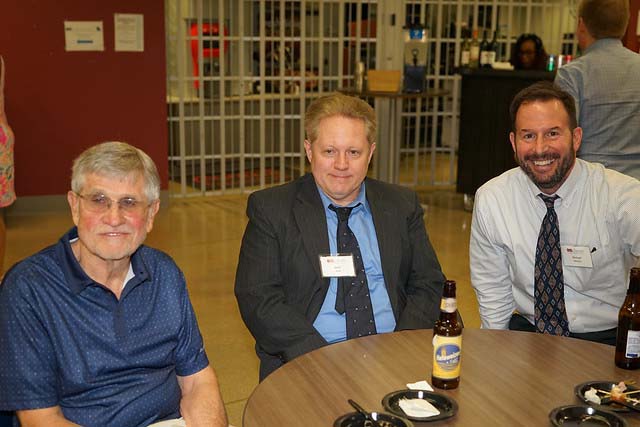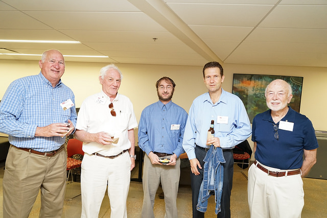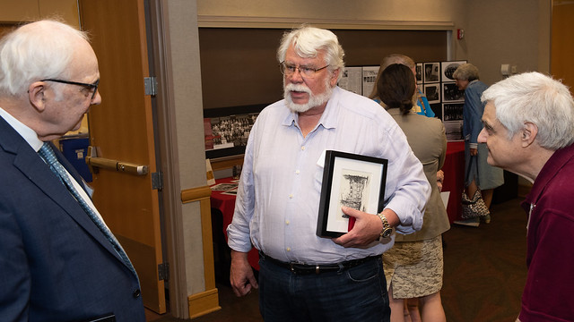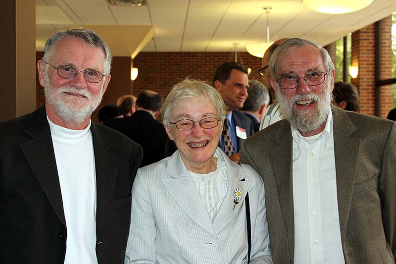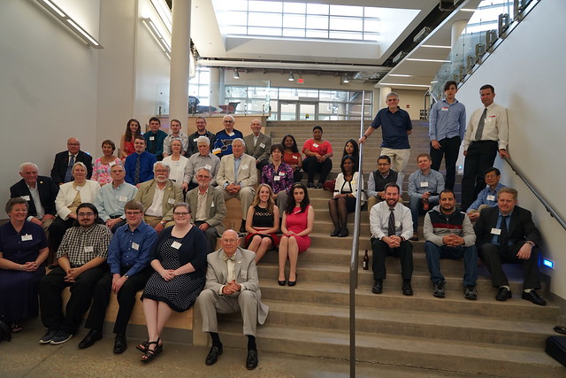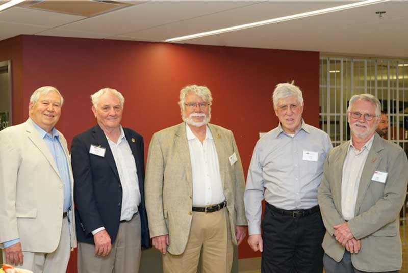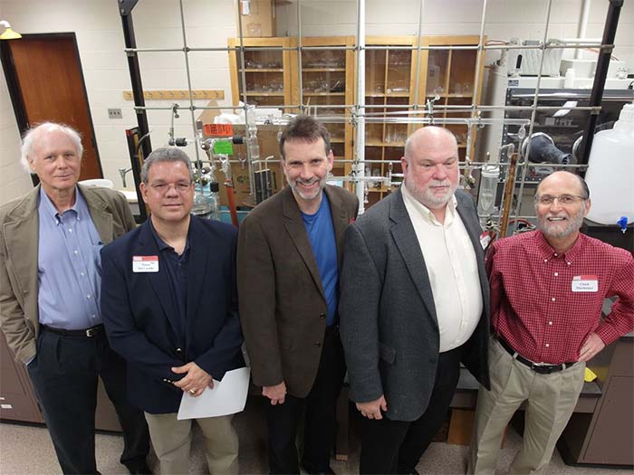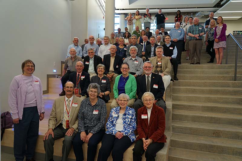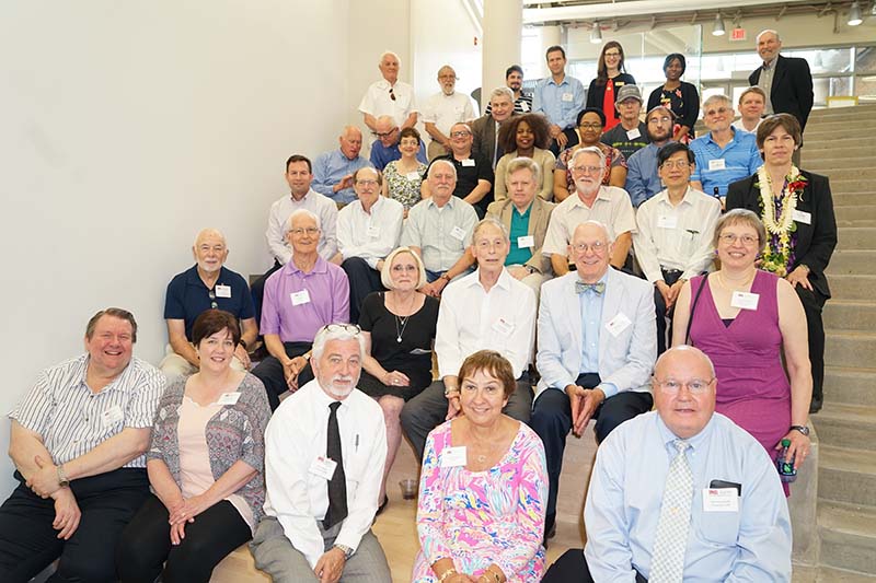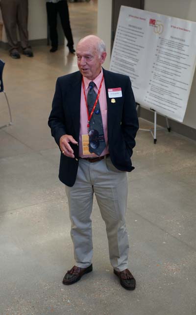 The Alumni Reception - in 2017, the 50th anniversary of the first graduating class, held in the Solarium of the new Science Learning Building. Here we see the group that participated in the Commencement, the three chemists David Henton, Tom Dueber and Lloyd Hill who were on stage at the 2017 Commencement, the group at the Alumni Reception, Tom Dueber, Dave Henton and Michael Finkes making a presentations at the reception.