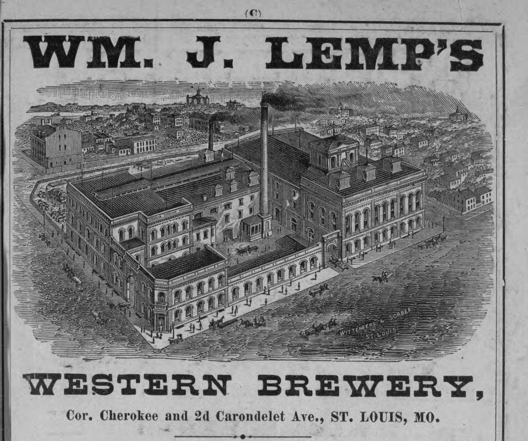Wm. J. Lemp is to-day, as he has been for a period of years, the great representative of the brewing interest of St. Louis. An interest that employs a capital greater than that used in the manufacture of flour, that gives employment directly to almost as many persons, and that distributes its product and draws its revenues from a wide extent of country. His father, Adam Lemp, manufactured the first lager beer in St. Louis, in a brewery which he established in 1840. Adam Lemp was a thorough practicaI brewer, and Wm. J. Lemp was foreman in his father's brewery on Second Street, between Elm and Walnut and learned the business in a most thorough manner.