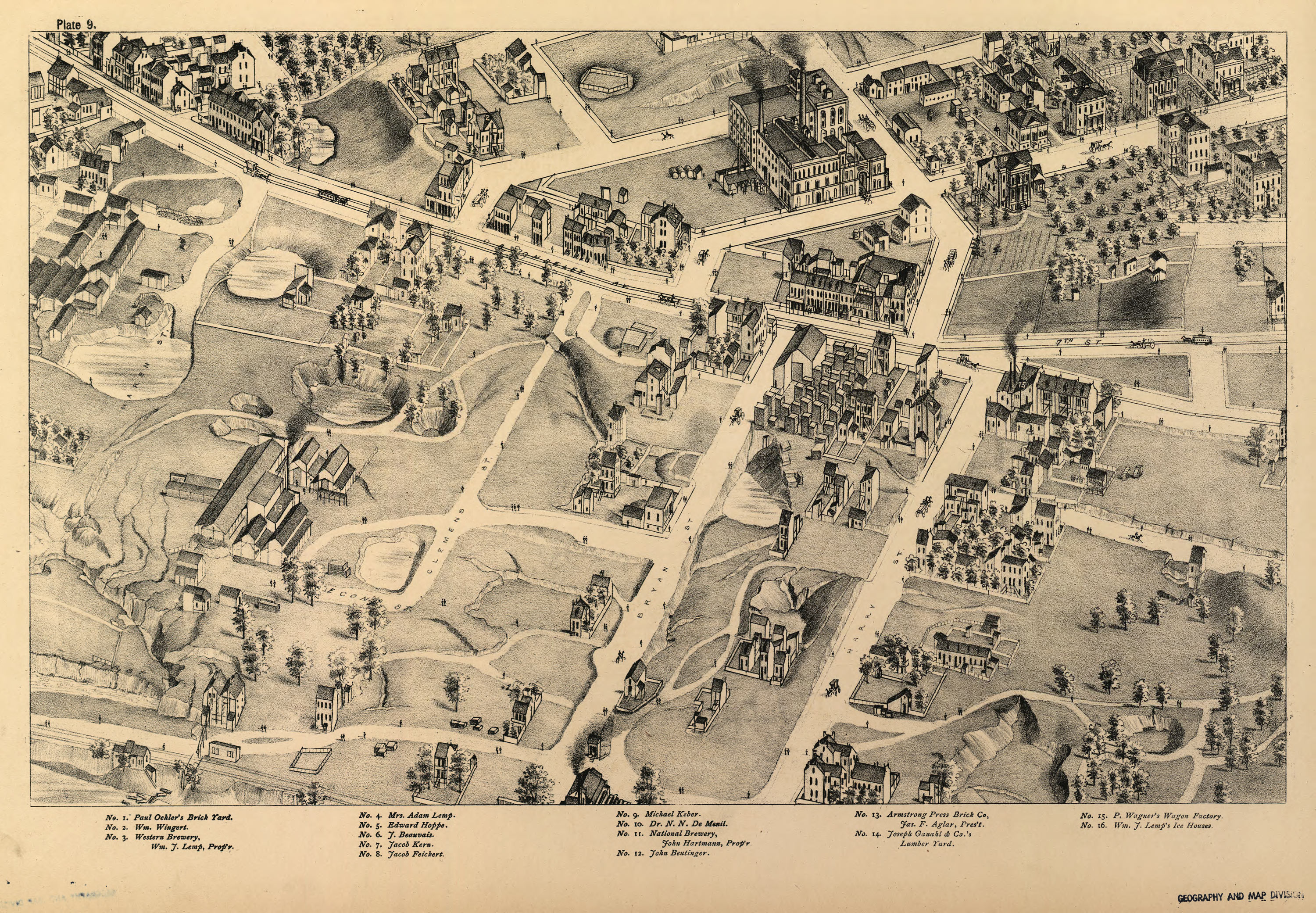In 1862, at his father's death, he took possession of the brewery, and a few years afterwards commenced building his present collassal establishment. Had the view which is given in these pages on plate No. 9, been taken from the northeast it would give the fronts of the various buildings, and show them to better advantage as a whole, yet their extent, as well as that of the cooperage and other structures auxilIary to them, is very completely shown.