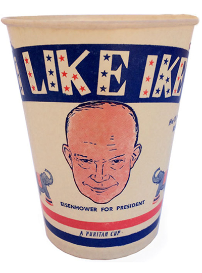 From the earliest elections to the present day, candidates and the public have used a wide array of objects to promote their political point of view. The button, in its many forms, is the most common campaign object, but campaign promoters quickly learned that both necessary and luxury items were effective ways to spread political messages. As a result, candidates and their slogans appeared on everything from cigars to shot glasses, paper fans to porcelain plates, and from coffee mugs to the cappuccino to put in them. The ten cases in this exhibition also illustrate the breadth of the Shopmaker Political Collection that continues to grow through donation and acquisition to document the history of American politics.