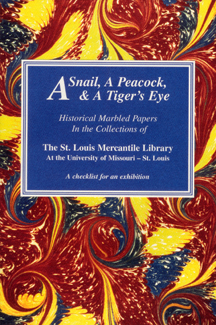 A Snail, Peacock, and a Tiger's Eye Historical Marbled Papers in the Collections of the St. Louis Mercantile Library at the University of Missouri--St. Louis : a Checklist for an Exhibition.Foreword by John Neal Hoover. 32 p. : ill. (some col.) ; 23 cm. $10.00 |