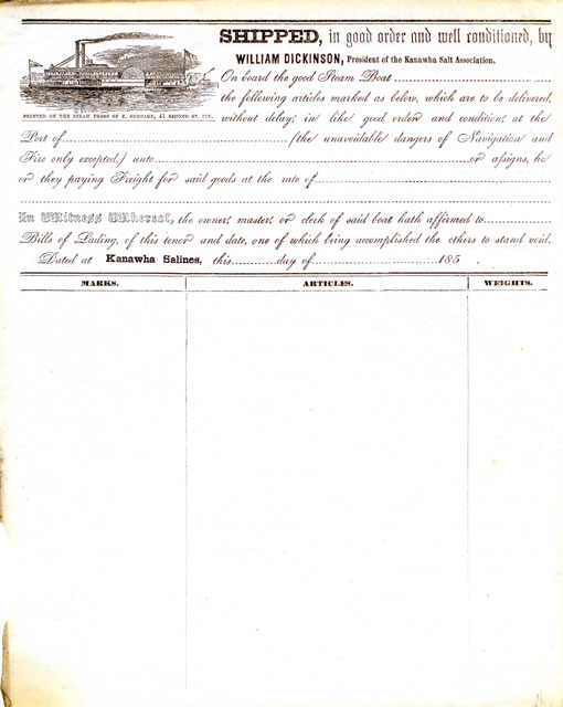 Kanawha Salines Bills of Lading Book