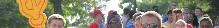 Triton Take-Off Weekend includes a series of events designed to act as an extension of the new student orientation process, and to welcome all new students to campus in the days leading up to their first week of classes. A relatively new tradition (2014), Serendipity Sendoff has taken hold as the official student welcome tradition at UMSL. The Serendipity Sendoff includes a ceremonial passing of the torch to the incoming class. Serendipity which means “good fortune” is to represent this new journey. Current students, faculty, staff, and alumni line the pathway leading from the Millennium Student Center to the Alumni Circle just south of the Thomas Jefferson Library as new student process down the hill to the Wayne Goode Statue where they sign the wooden Trident and rub the statue for good luck on this UMSL journey.