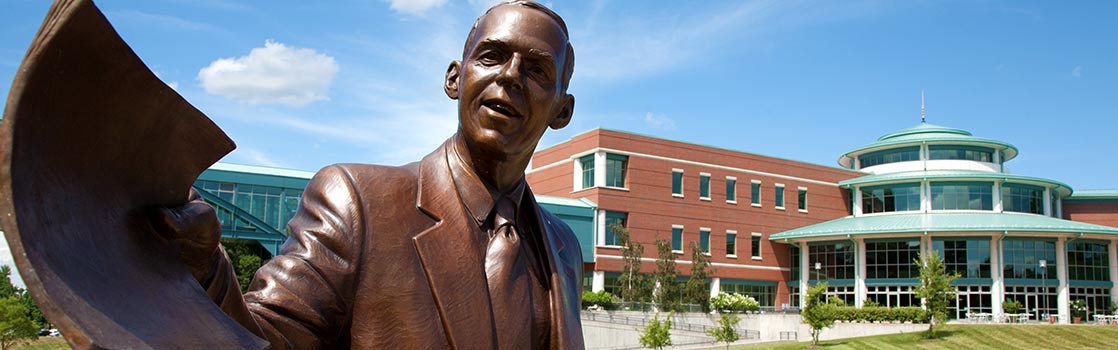 Keep an eye on the Wayne Goode statue located on the south lawn of the Millennium Student Center. Wayne – UMSL’s founder and former Missouri state senator – can often be seen sporting an ever-changing t-shirt. The tradition of putting a t-shirt on the statue was started by the campus radio station, TheU, and has been carried forward by the Student Government Association as a way to visually promote campus spirit, events, and activities.