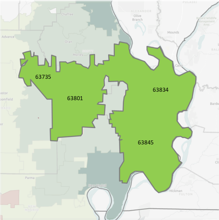 NLF's expansion is rooted in data-driven indicators tied to social determinants of health— unemployment, poverty, high school graduation, housing cost burden, violent crime, and life expectancy factors. NLF will select residents who live in or serve—either professionally or as volunteers—within the following zip codes that have poorer indicators relative to the state of Missouri in four of the seven indicators. If you live or work/volunteer in the following counties, we invite you to apply: Scott, Dunklin, New Madrid, Pemiscot, Butler, and Stoddard counties.