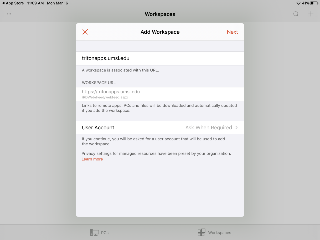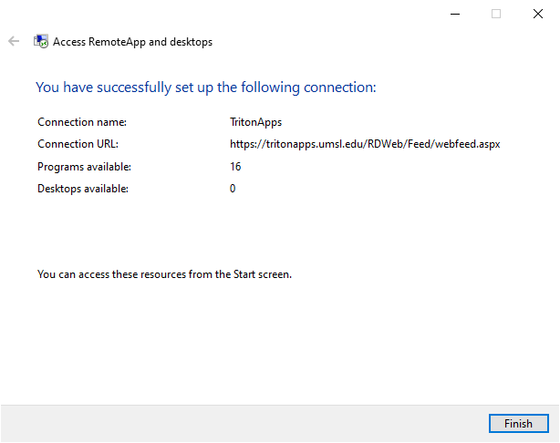 - Enter the connection URL: https://tritonapps.umsl.edu/RDWeb/Feed/webfeed.aspx