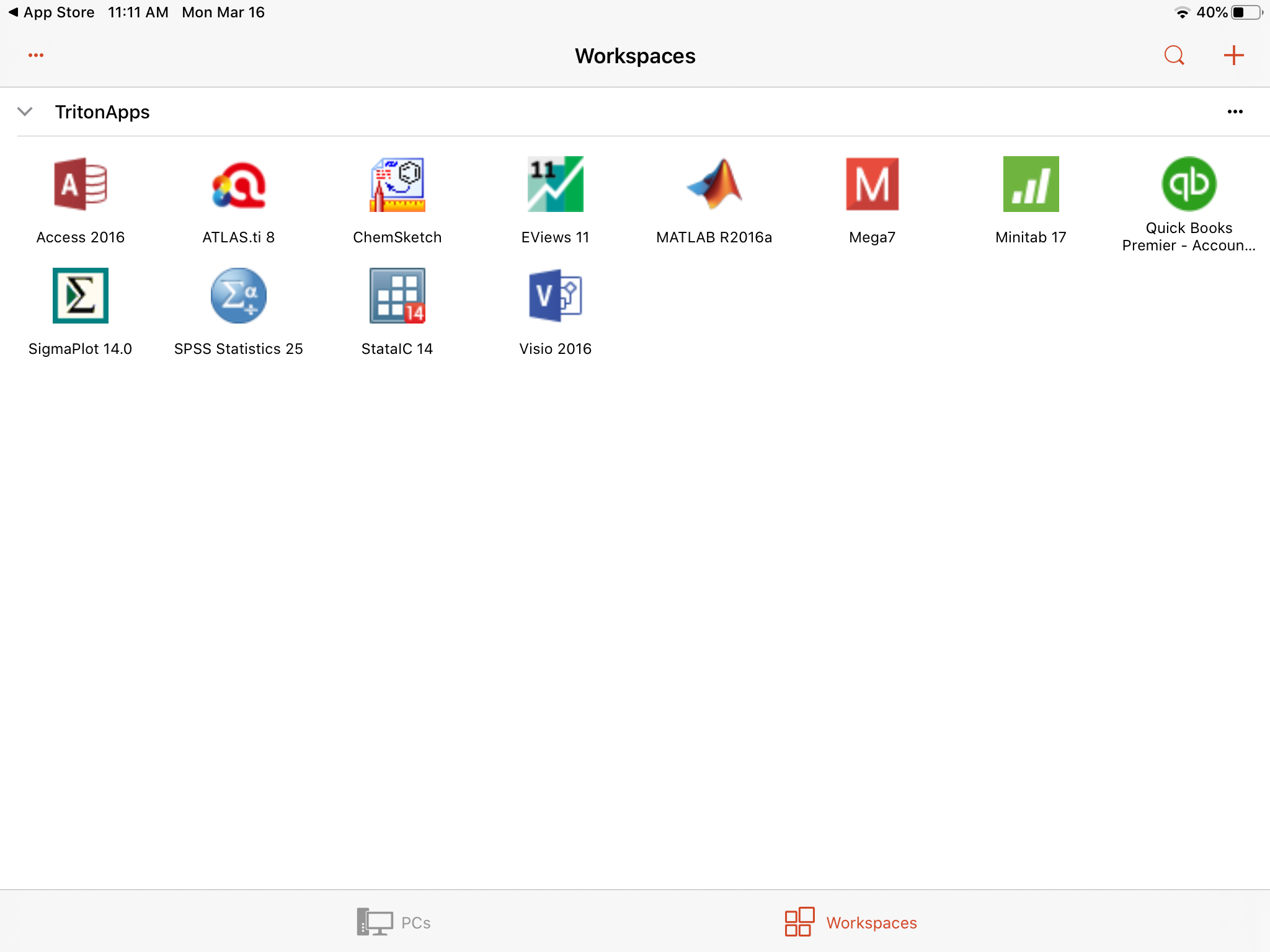 Select the Workspaces tab, and you should see the applications available from TritonApps.