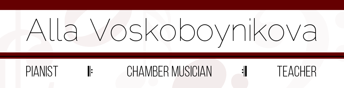 Welcome to the personal website of Alla Voskoboynikova. Here you will find details of upcoming events and hear selections of Alla's performances both as a solo pianist and as a collaborative artist.