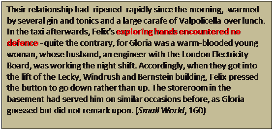 In the taxi afterwards, Felix's exploring hands encountered no defence - quite the contrary, for Gloria was a warm-blooded
