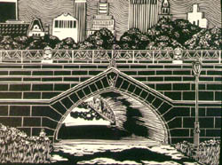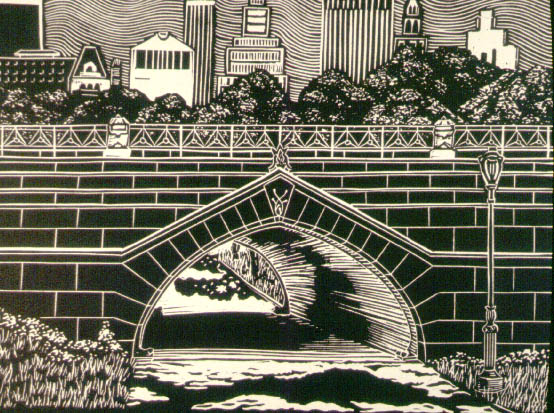 The "Central Park" lino print is from my current work "The Lamp Post" series. A simple aesthetic decision to place a street light in my Amsterdam print made me think of this universally known, but sometimes overlooked object. I began to take notice of these ubiquitous fixtures in my collection of photographs. The unique designs seemed to reflect the personality of each particular city, from the utilitarian to the most elaborate. Blending travel and printmaking offers me an opportunity to share two of my passions. Through the appreciation of art by others we can sometimes live beyond our own lives. This extension of life, for me, can be found in those artists who have influenced my work: the feeling of Klimt, the fine detail of Durer, the color of Matisse and others. Making aesthetic decisions and using critical thinking skills are like putting a puzzle together except that one is creating the pieces as the problem is being solved.
