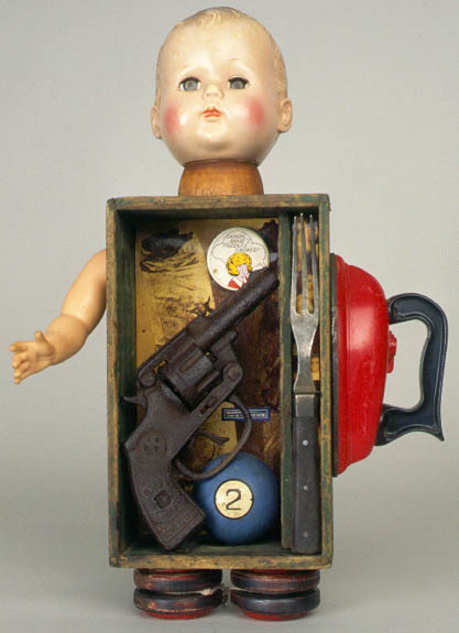 As an artist, I use the medium, assemblage, as a voice to better understand our human condition. Loving objects that are aged and reflect history, the artifacts I collect often wait years before finding their place. These antique and commonplace objects, utilized figuratively and symbolically in small-scale assemblages, allow me the opportunity to look within and beyond myself for inspiration and common emotions. Enjoying the challenge of rearranging reality, altering perceptions, and integrating the past with the present, I'm influenced by the surrealists, Joseph Cornell and family.