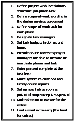 Ingardia, M. (2008). 12 steps to protect your firm's profits against menance of scope creep. Design Firm Management & Administration Report, 8(1), 1-10.