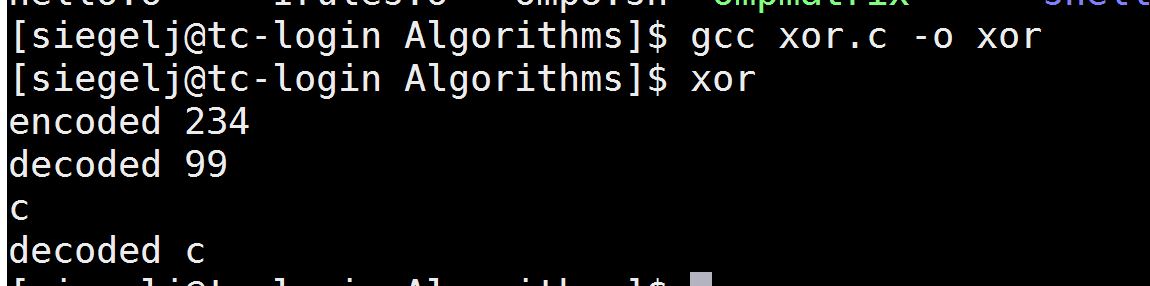 printf("\ndecoded %c\n",(t^k)^k);