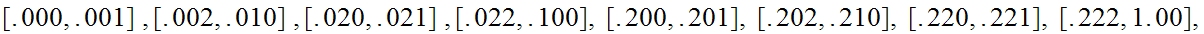 We next remove middle thirds from the four closed intervals, leaving eight closed intervals