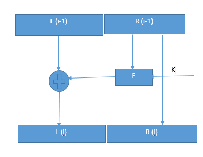 -     Ri = Li-1 ⊕ f(Ri-1,Ki)